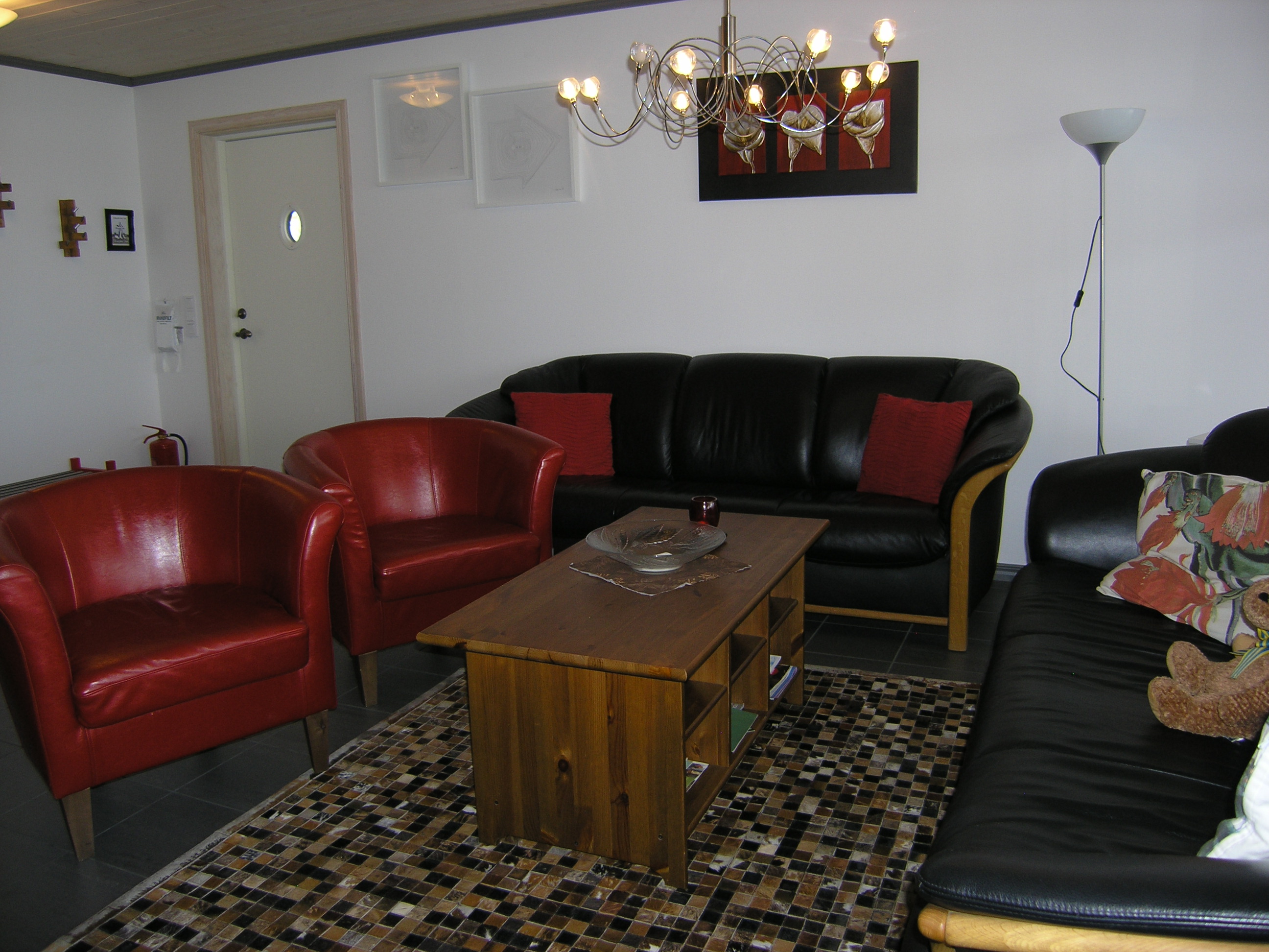 • stort allrum med sköna sittmöbler, tv och kamin